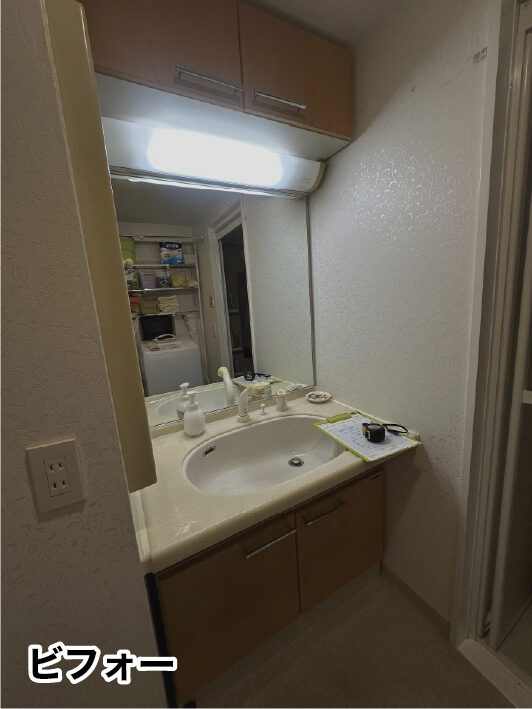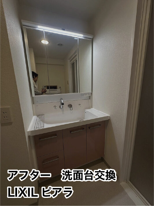 神戸市 マンリョンリフォーム、洗面台交換、LIXILピアラ900、内装貼り替え、リリカラ