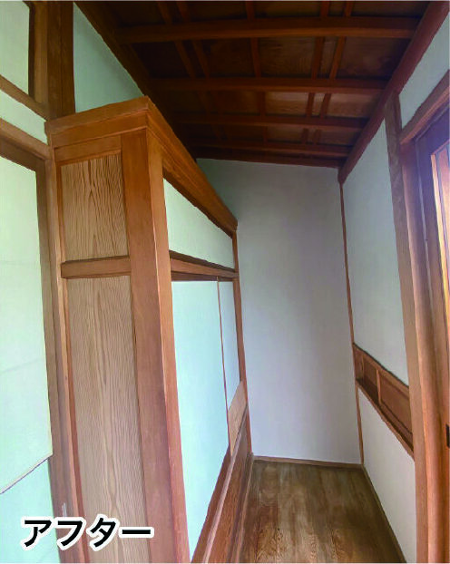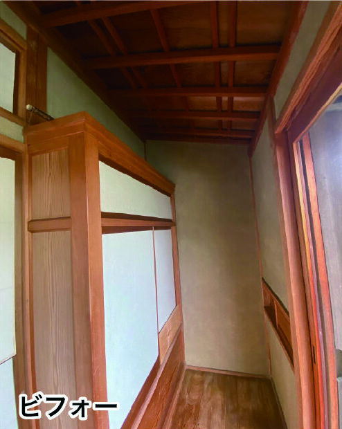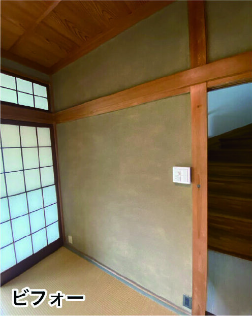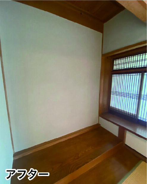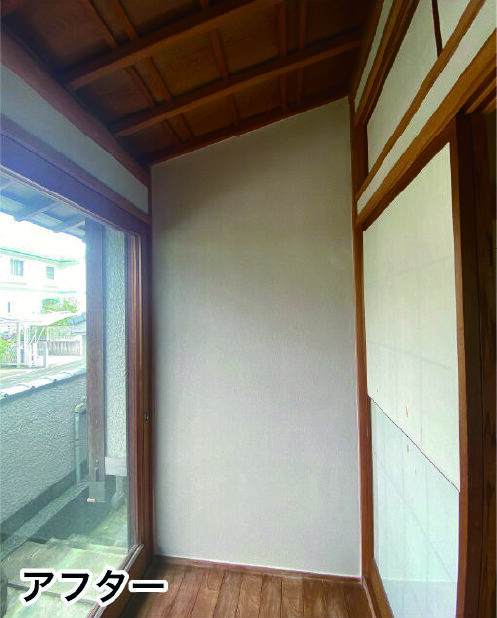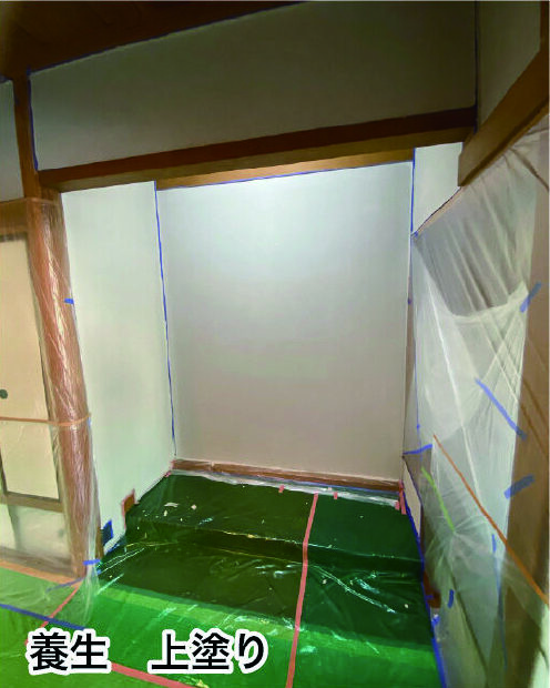 神戸市 戸建リフォーム、3days、和室塗り壁塗装、パラパラ落ちてくる土を、ペンキで固めて、見た目も明るく、養生で半日、下塗りシーラー、中塗り、上塗り、日塗工L19-75C