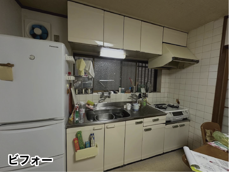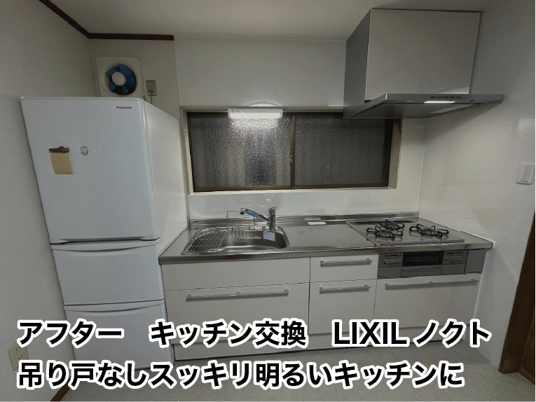 神戸市 戸建リフォーム、LIXILキッチンノクト、吊り戸なし、スッキリ明るいキッチンに、内装貼り替え